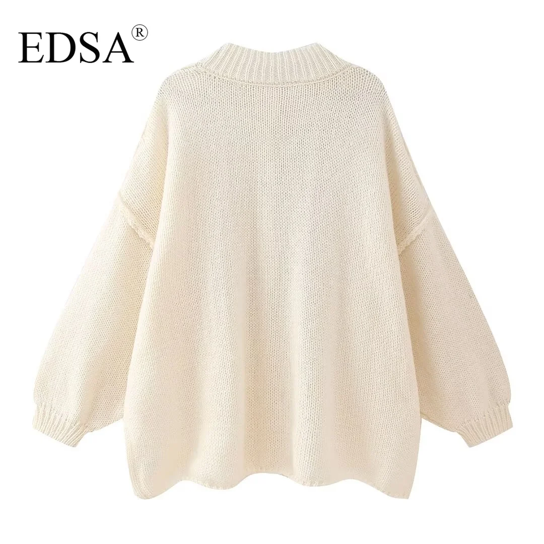 EDSA Women Basic Casual Loose Button Plain Knit Sweater Solid Coat New 2024 Autumn Winter Fasion Lazy Cozy Basic Sweater