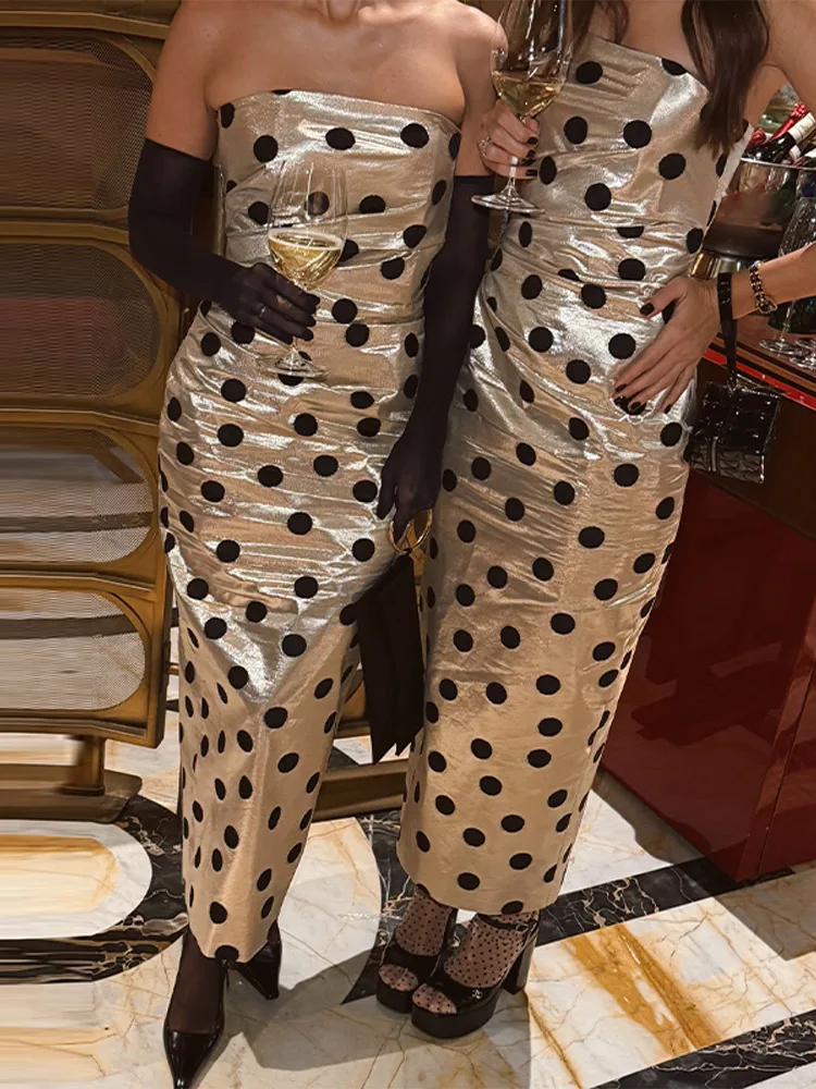 Elegant Women’s Dress Strapless Sleeveless Slim Hip Package Print Polka Dot Female Dresses 2025 Autumn Spring Fashion Lady Robe