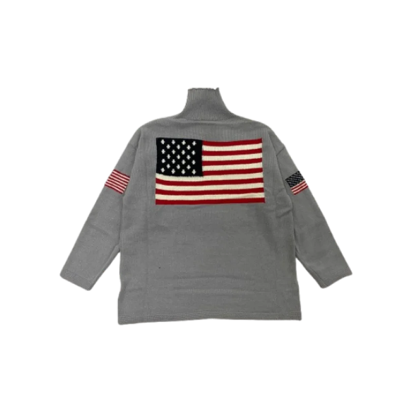 European and American autumn and winter design sense flag print knit sweater casual loose round neck pullover sweater