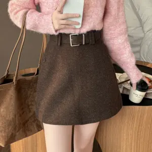 Seoulish Autumn Winter New Vintage Woolen Women’s Short Skirts with Belted High Waist Korean A-line Sexy Mini Skirts Female