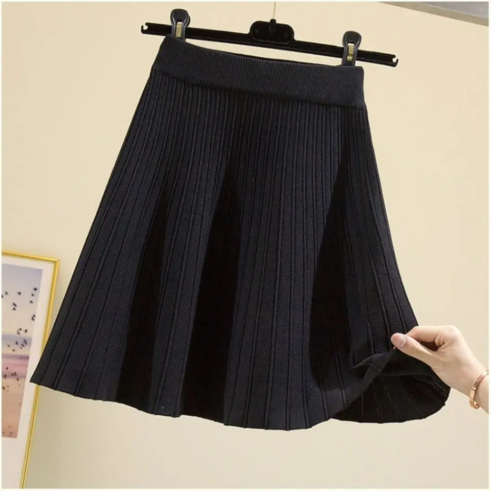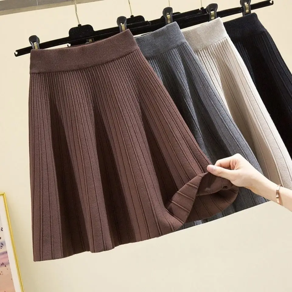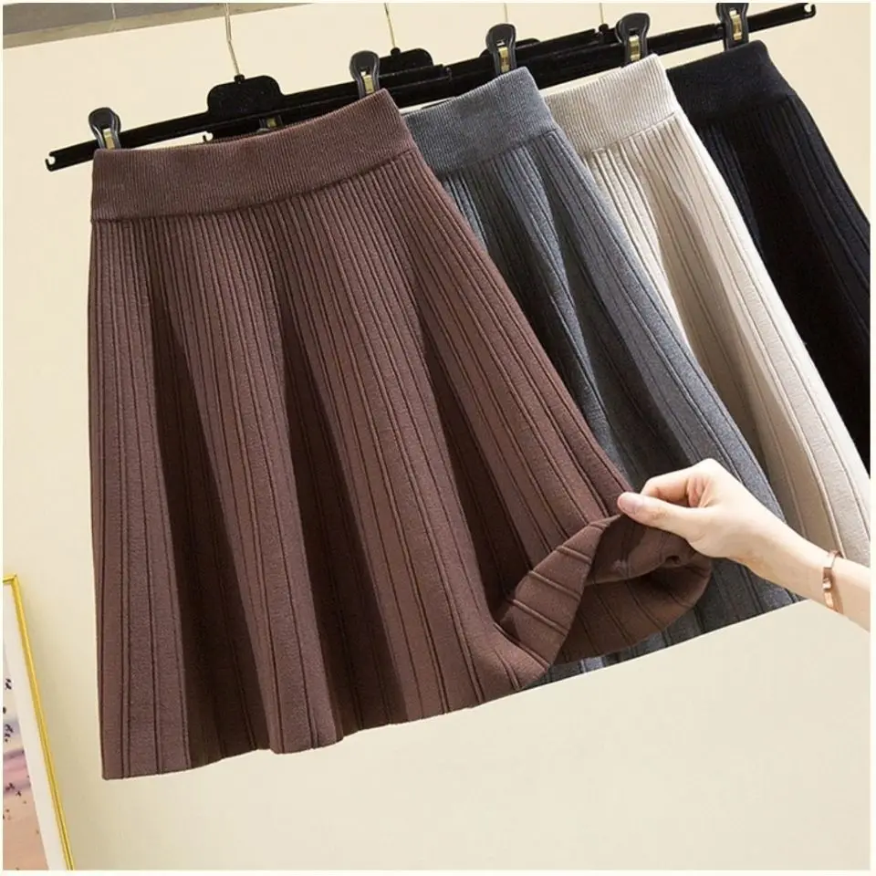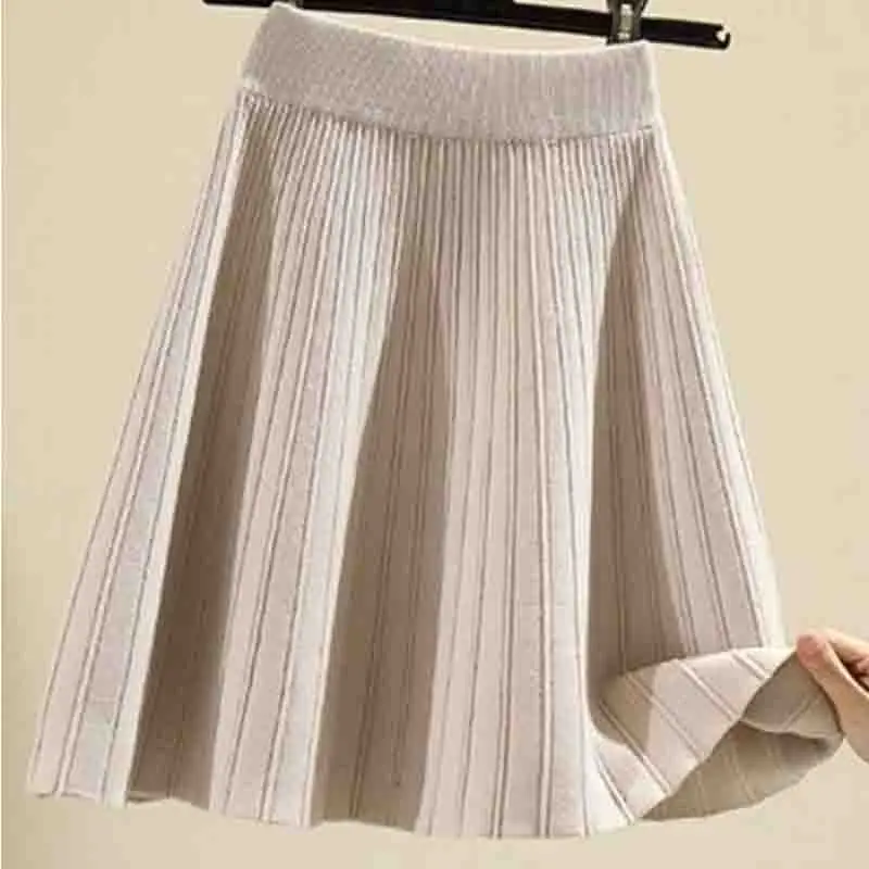 Knitted High Vintage All-match Skirts for Women Short 2022 New Korean Style Pleated Autumn Chic Women’s Clothing A-line Skirt