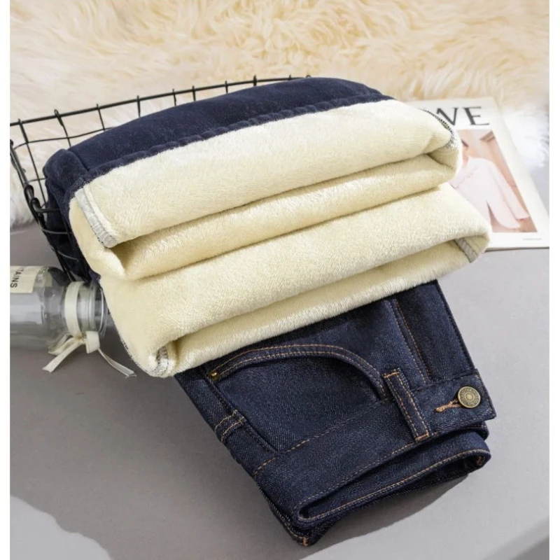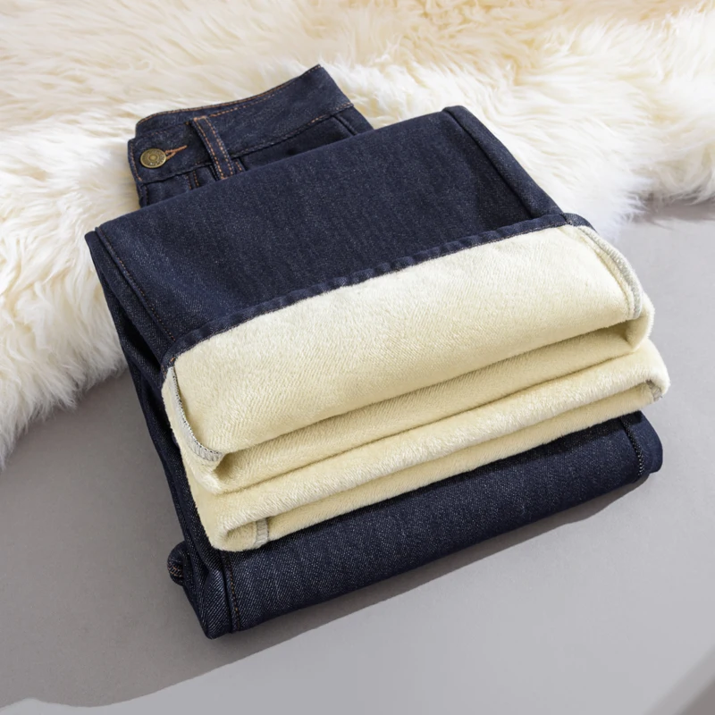 Winter Fleece Lined Jeans for Woman Y2k Pants 2025 Wide Leg Blue Loose Straight Trousers Pear Shape Body Comfort Fashion Trend